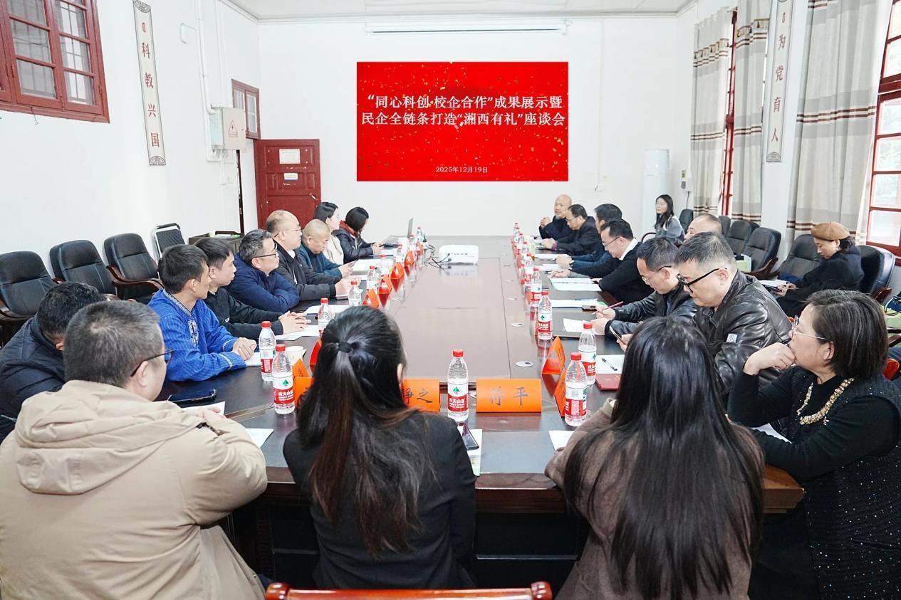 本网讯(通讯员 王芝 刘念 罗紫琪)12月19日,由湘西州委统战部、db真人体育官网、湘西州工商联联合举办的同心科创·校企合作成果展示暨民企全链条打造“湘西有礼”活动在db真人体育官网成功举行。本次活动汇聚了全州中医药、食品、茶业、文旅、电商等产业链的代表性企业和行业协会负责人,通过产品展销品鉴、实验室实地探访、主题座谈交流三个环节,共同探讨校企协同创新,谋划“湘西有礼”品牌发展大计,共推“湘西有礼”品牌全链条升级。