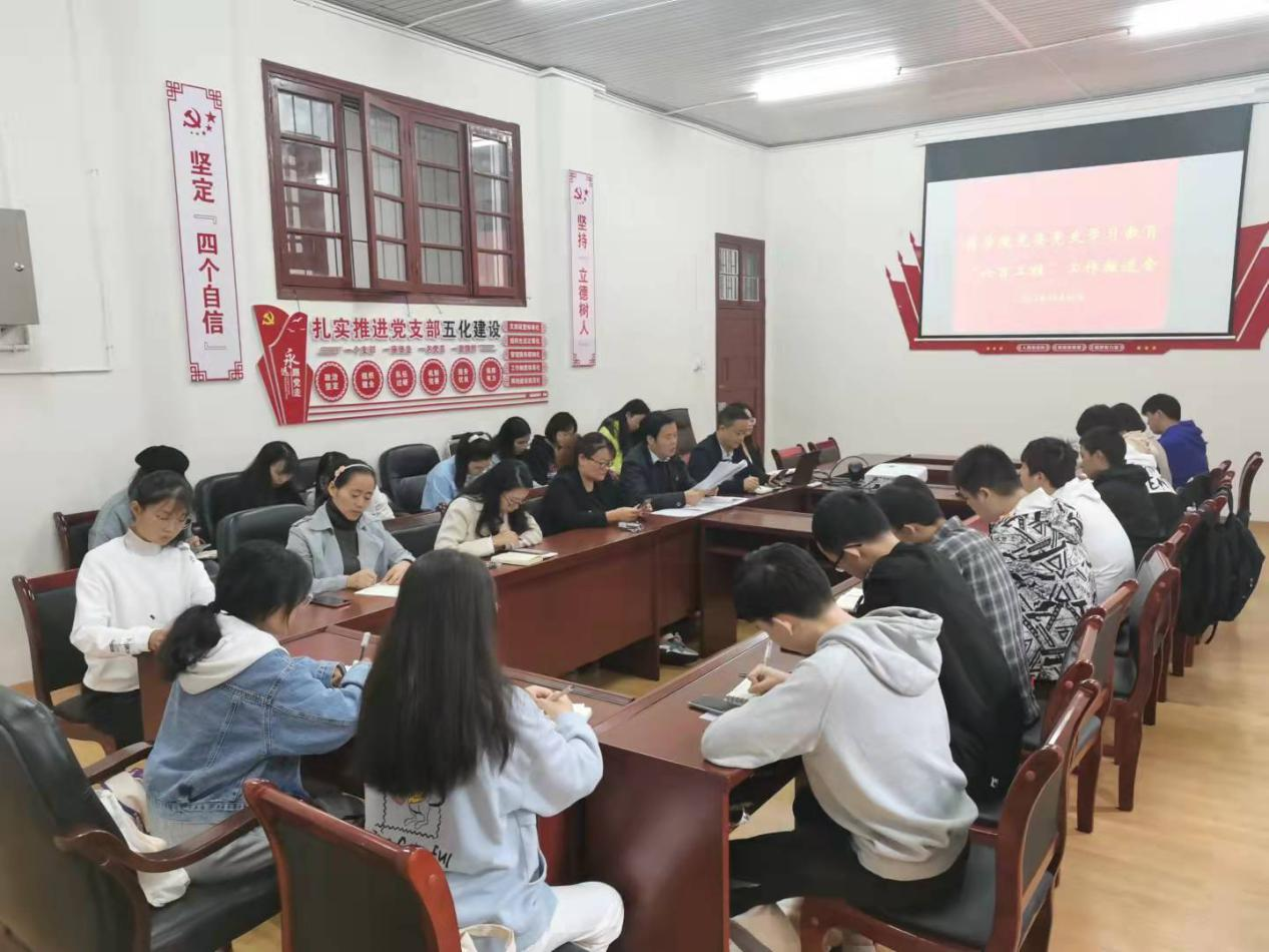 10月14日,学院党委在党员活动室召开党史学习教育“六百工程”工作推进会,公司党委副书记王江生、DB视讯第三党总支国防教育公司党支部书记曾容、教师党员姚殊凤、公司教工党支部、员工党支部支委,相关班级班委、寝室长参加会议。会议由王江生主持。