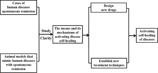 总而言之,疾病自愈是指(或可被定义为)无需药物治疗或接受不足以缓解疾病的治疗而获得的疾病痊愈。已有的证据支持如下观点:即触发疾病自愈是研发新药和新治疗技术最有希望的靶点。基于特定目标疾病的生物学构成来设计可触发其自愈的药物和或技术是值得进一步研究的课题。开发模拟人类疾病自愈的动物模型将是实现这一目标的宝贵工具。科学家们永远不知道为什么有些东西不起作用,直到他们找到起作用的东西。进行疾病自愈研究的意义和影响可体现在: