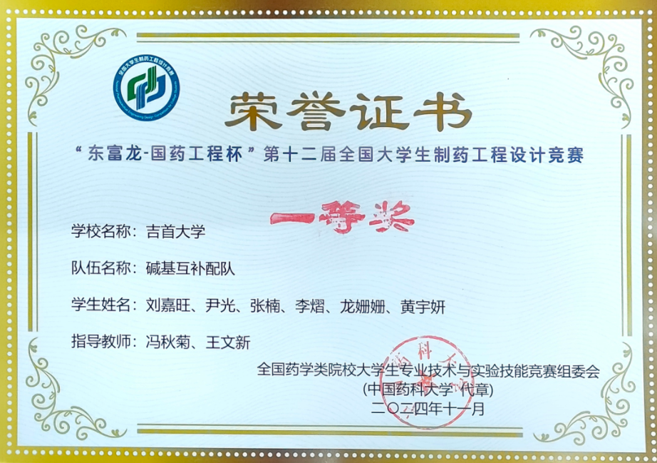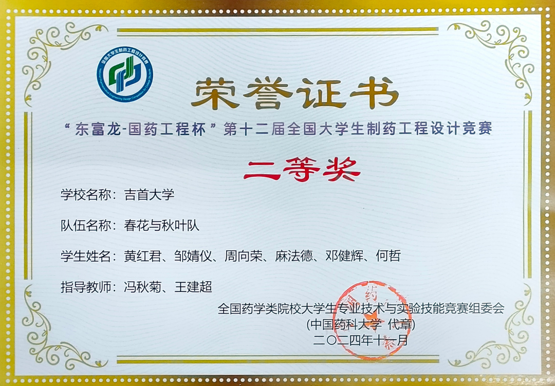 本网讯(尹光冯秋菊)2024年11月17日,由全国药学类院校老员工专业技术与实验技能竞赛组委会主办、重庆理工大学承办的“东富龙-国药工程杯”第十二届全国老员工制药工程设计竞赛全国总决赛在重庆理工大学完美落幕,由db真人体育官网制药工程专业刘嘉旺、尹光、张楠等本科生组成的“DB视讯碱基互补配队”荣获全国一等奖(指导老师:冯秋菊、王文新),由db真人体育官网制药工程专业黄红君、邹婧仪、周向荣等同学组成的“DB视讯春华与秋叶队”(指导老师:冯秋菊、王建超)获得二等奖。
