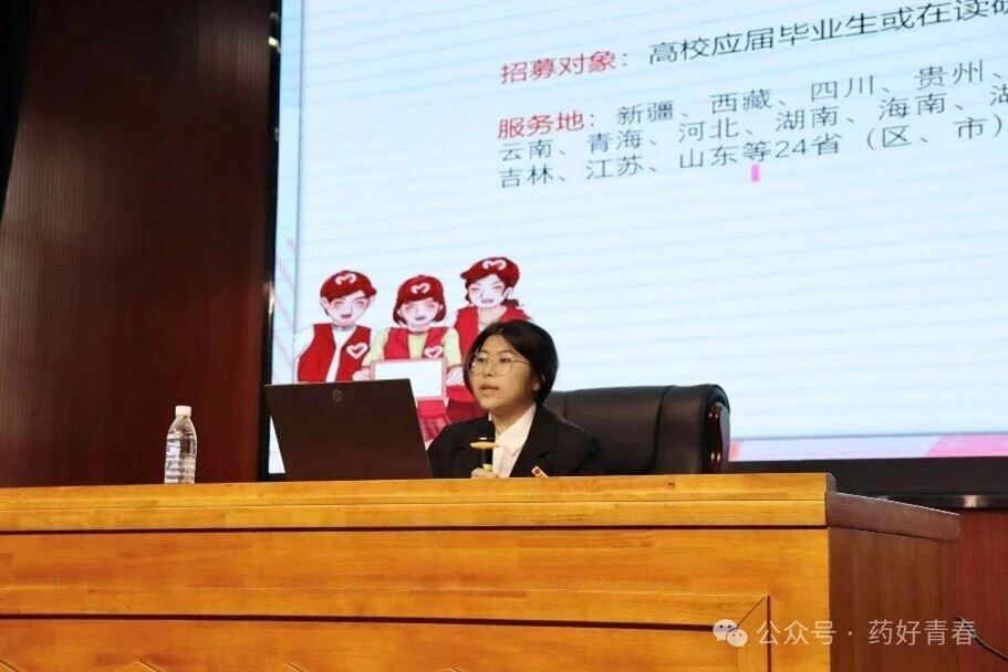 宣讲人康成婧围绕西部计划的服务内容、政策支持与报名方式等方面展开介绍,帮助同学们全面了解项目详情与就业前景,鼓励大家踊跃参与,赴西部建功立业、展现青春作为。