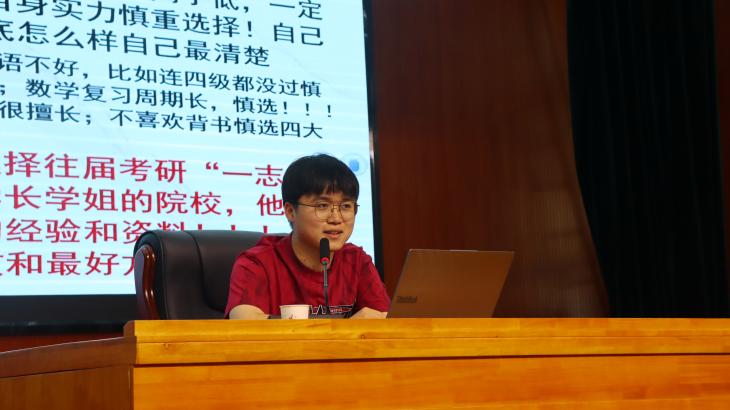 本网讯(通讯员 胡心洁)为帮助同学们深入了解考研形势,熟练掌握复习策略,5月23日中午,db真人体育官网于大田湾校区礼堂举办了2025届毕业生考研经验分享会。此次分享会特别邀请到黄雯、卢佳、廖利辉、周芳芳、雷嘉豪五位成功考取理想院校的优秀毕业生前来作备考经验分享。22级考研同学,23级全体同学及部分24级同学参会。会议由学习部任美丽主持。