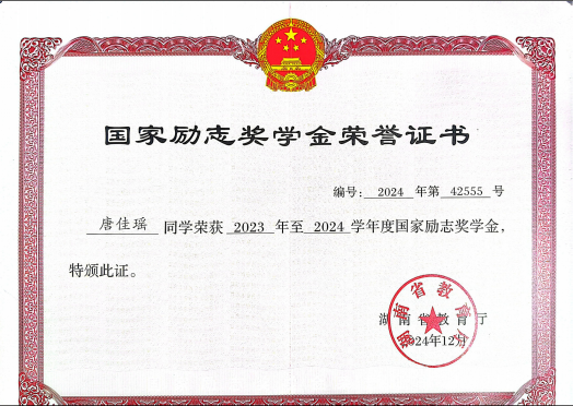 尽管唐佳瑶的家庭困难但她的父母仍十分支持她读书。在她读小学期间,她母亲经常早出晚归,看着母亲疲惫的身影,她十分心疼,便暗自发誓要让母亲能轻松些,在家她就主动做好家务活,周末她便主动跟着母亲去地里干活,母亲常夸她懂事,她很是开心。那时她便懂得,唯有勤奋与担当,才能撑起这个家的希望。她坚信,知识能改变命运,而孝心将照亮前行的路。