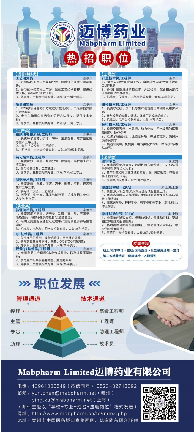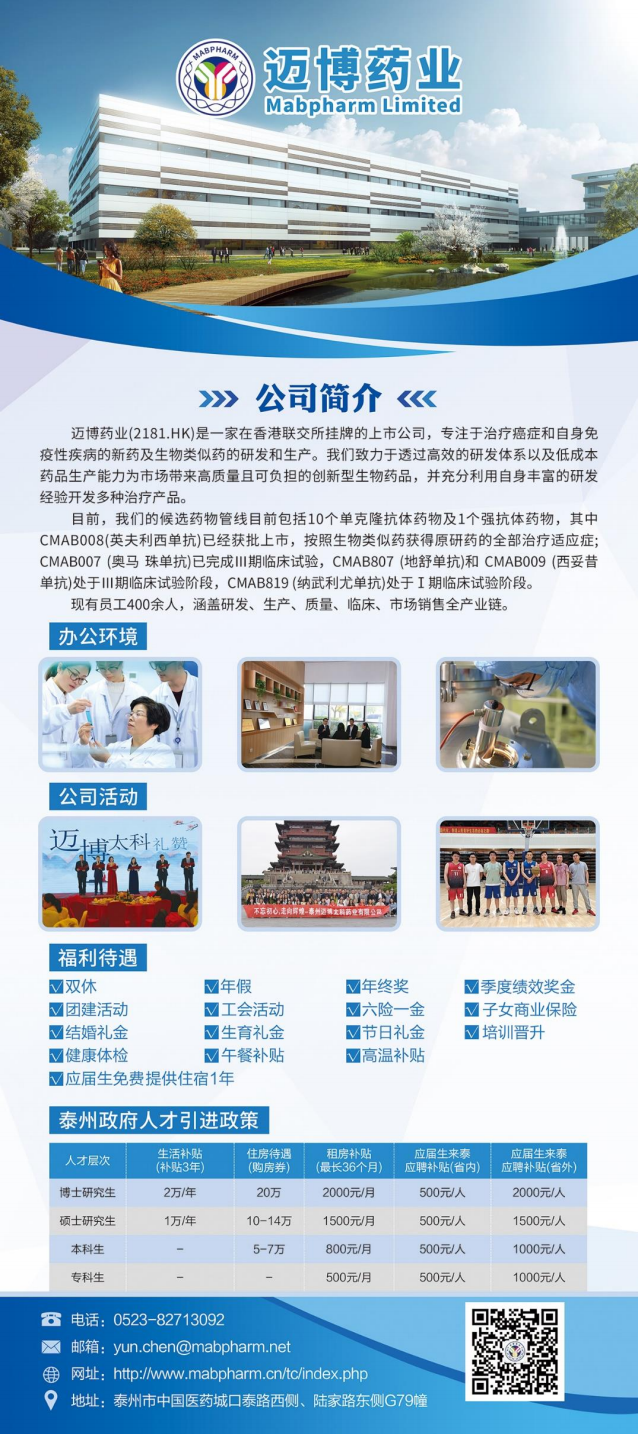 2022年实习就业招聘||迈博药业招聘简章