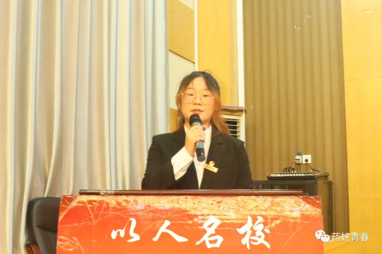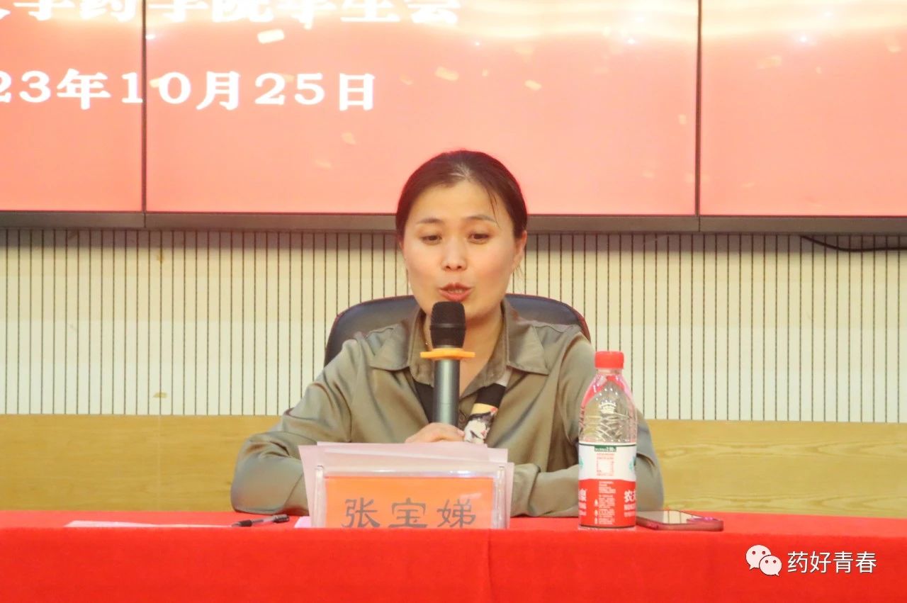 图为 校团委副书记张宝娣出席会议并讲话