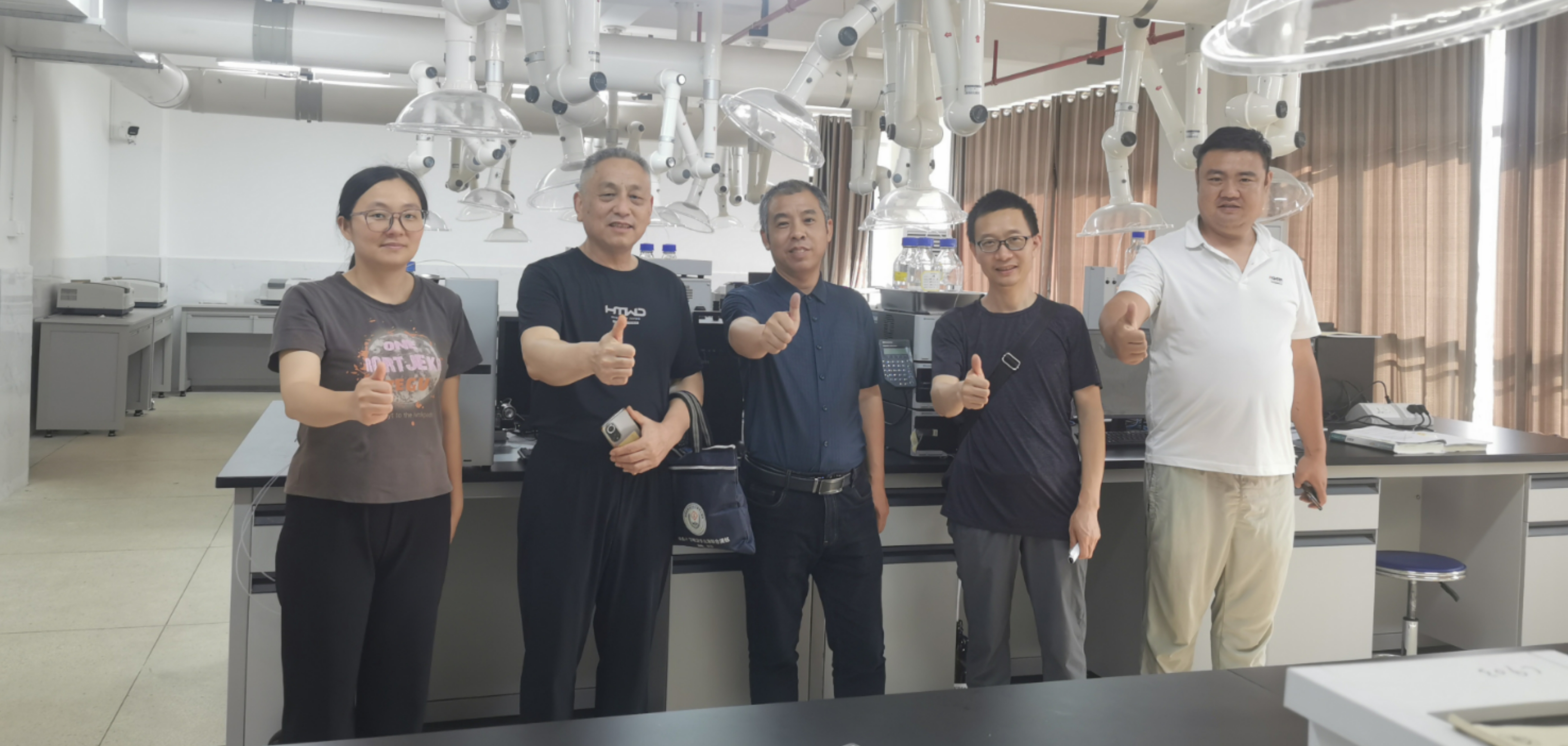 图为 曾一凡(左二)、吴胤宙(中)员工一行参观实验室。