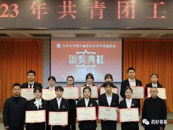 图为 孝心老员工颁奖现场(第二排右一为陈雅婷、右二为李震)